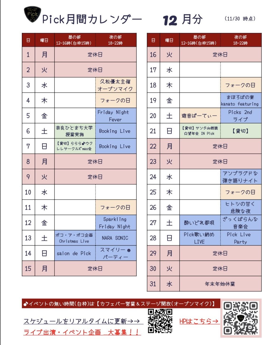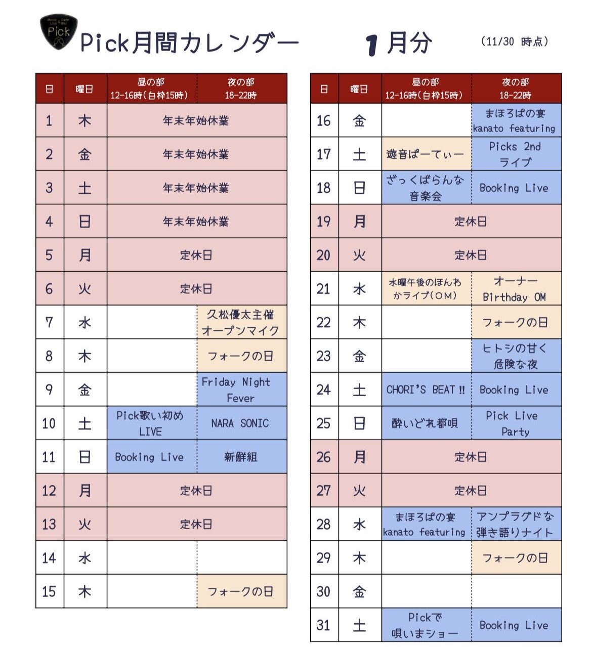 イベント・営業スケジュール