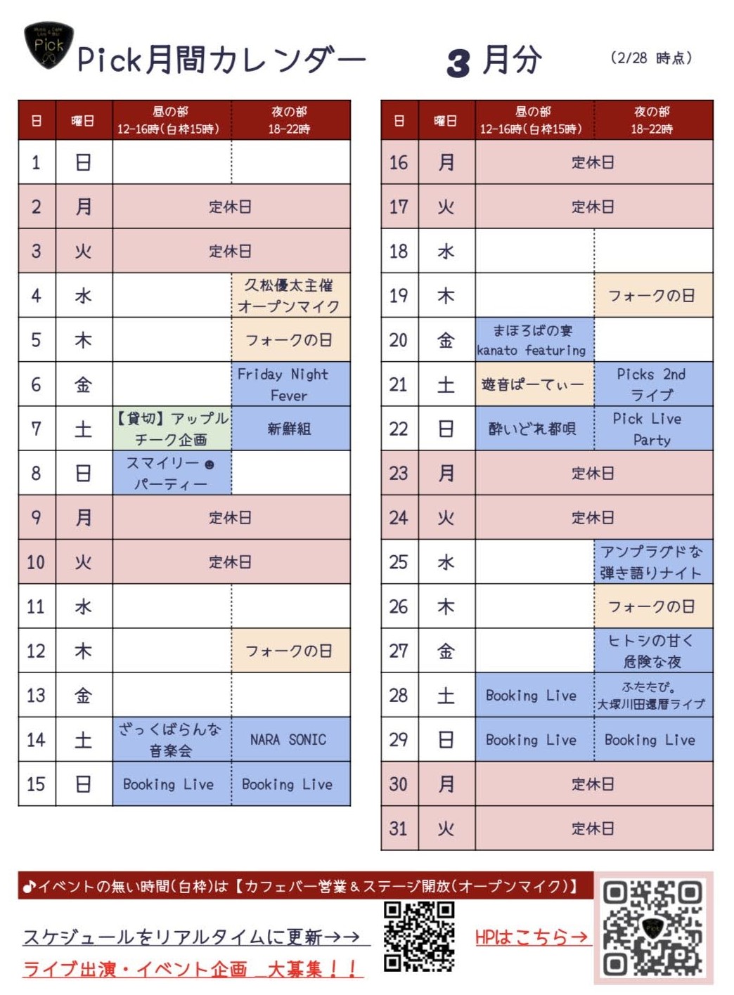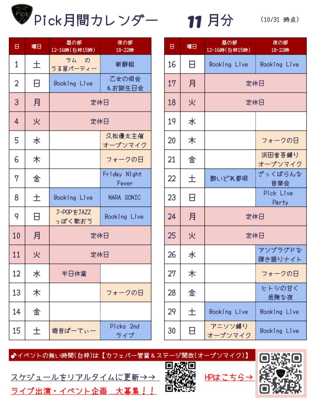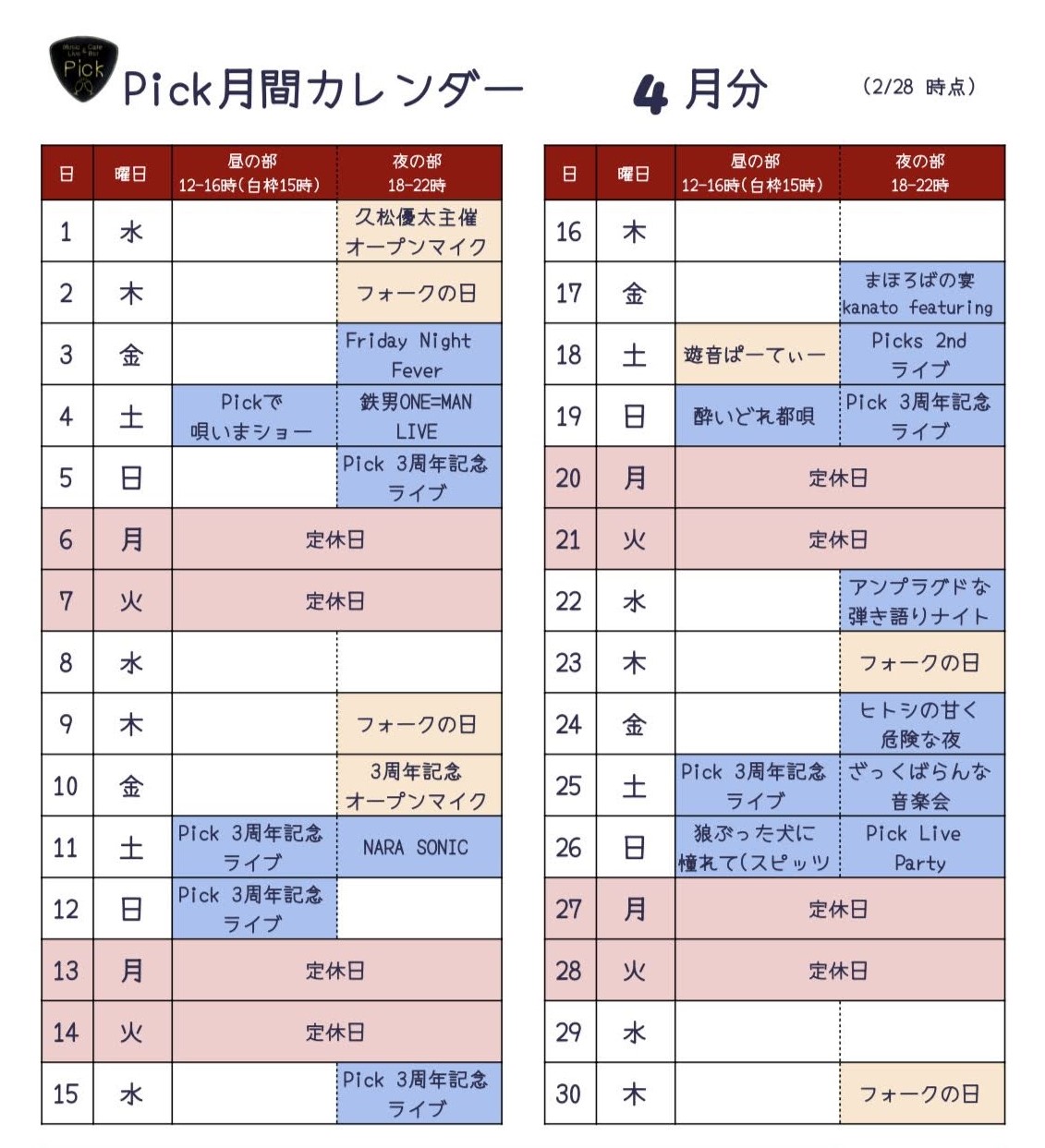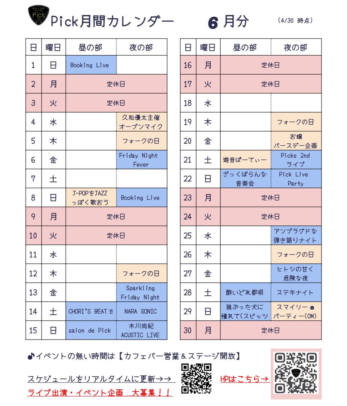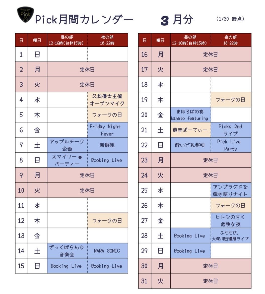 イベント・営業スケジュール