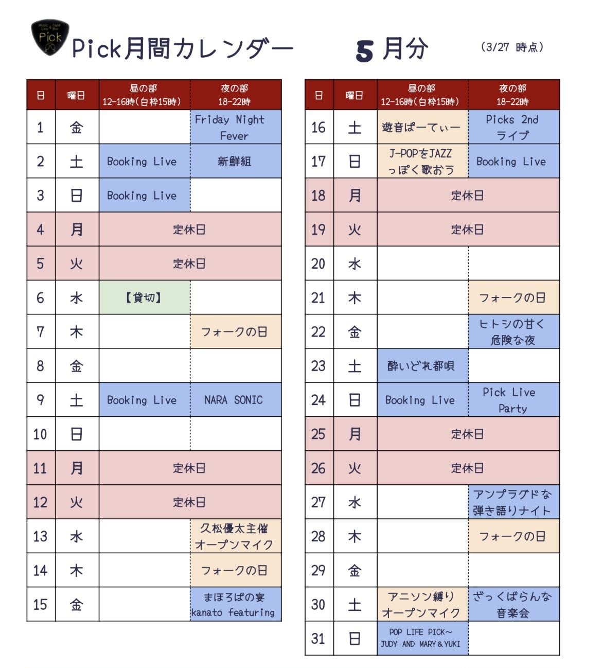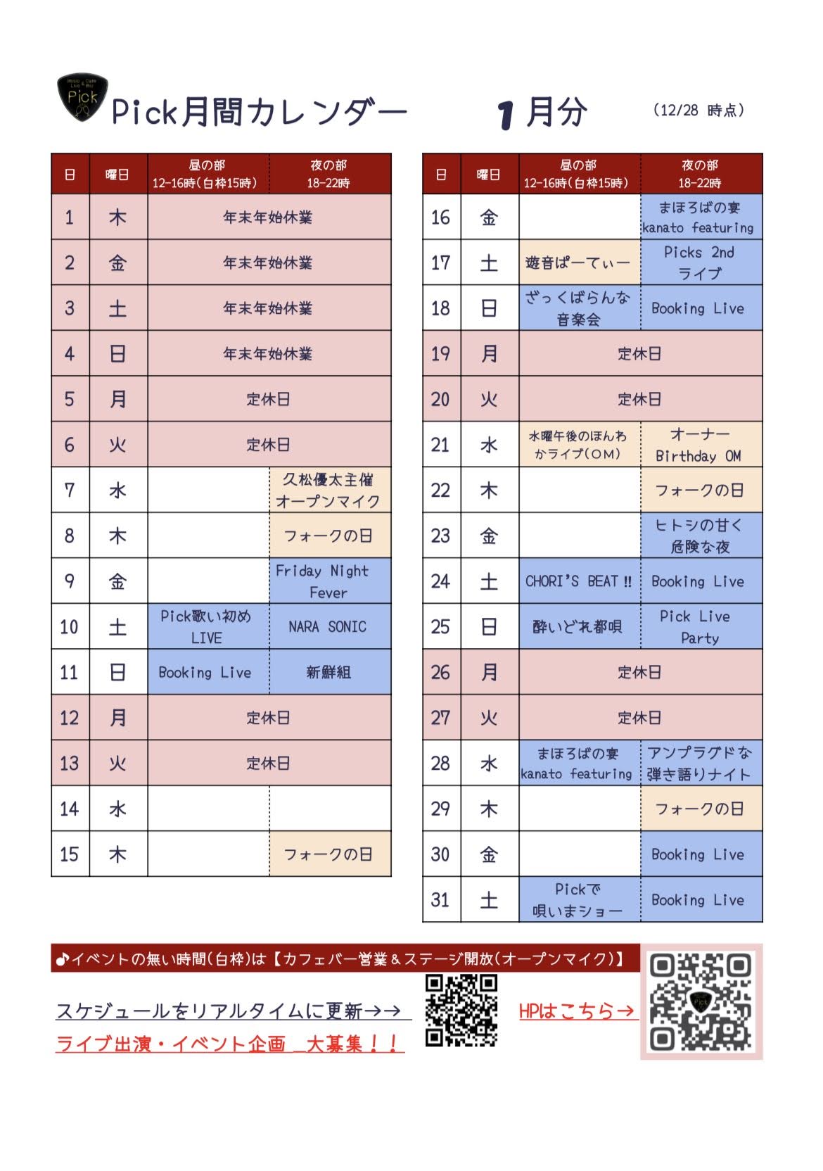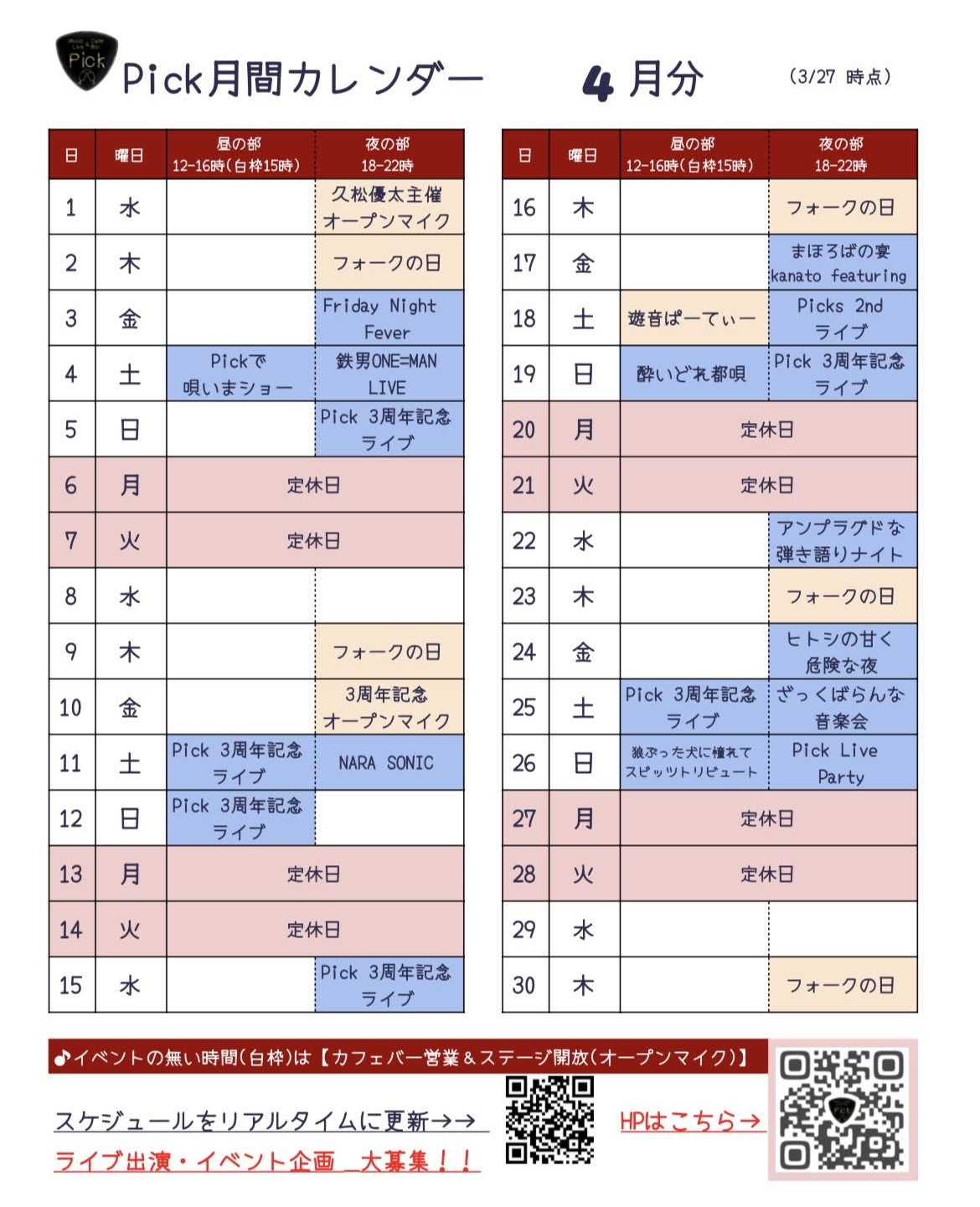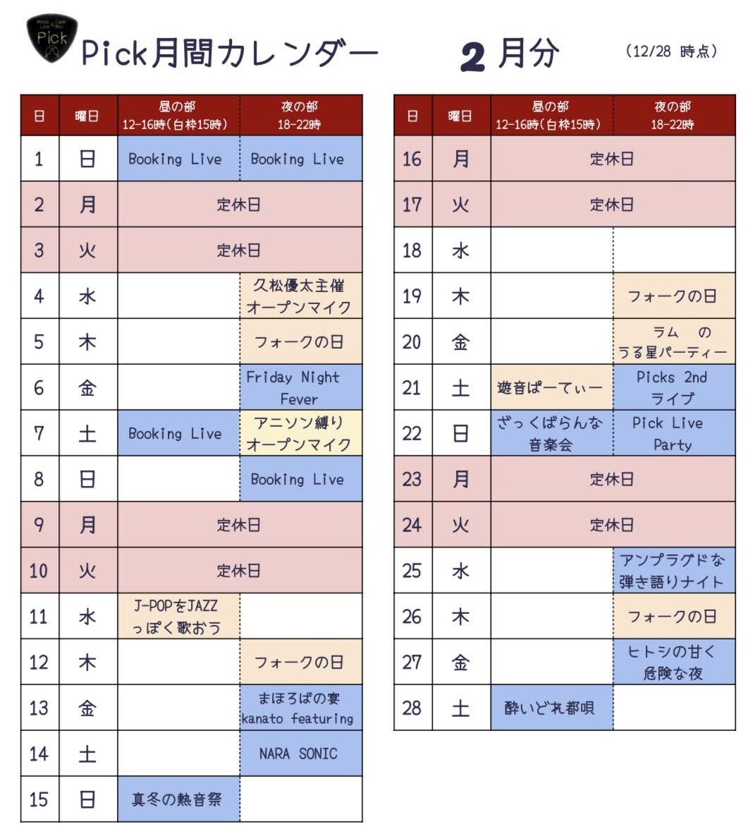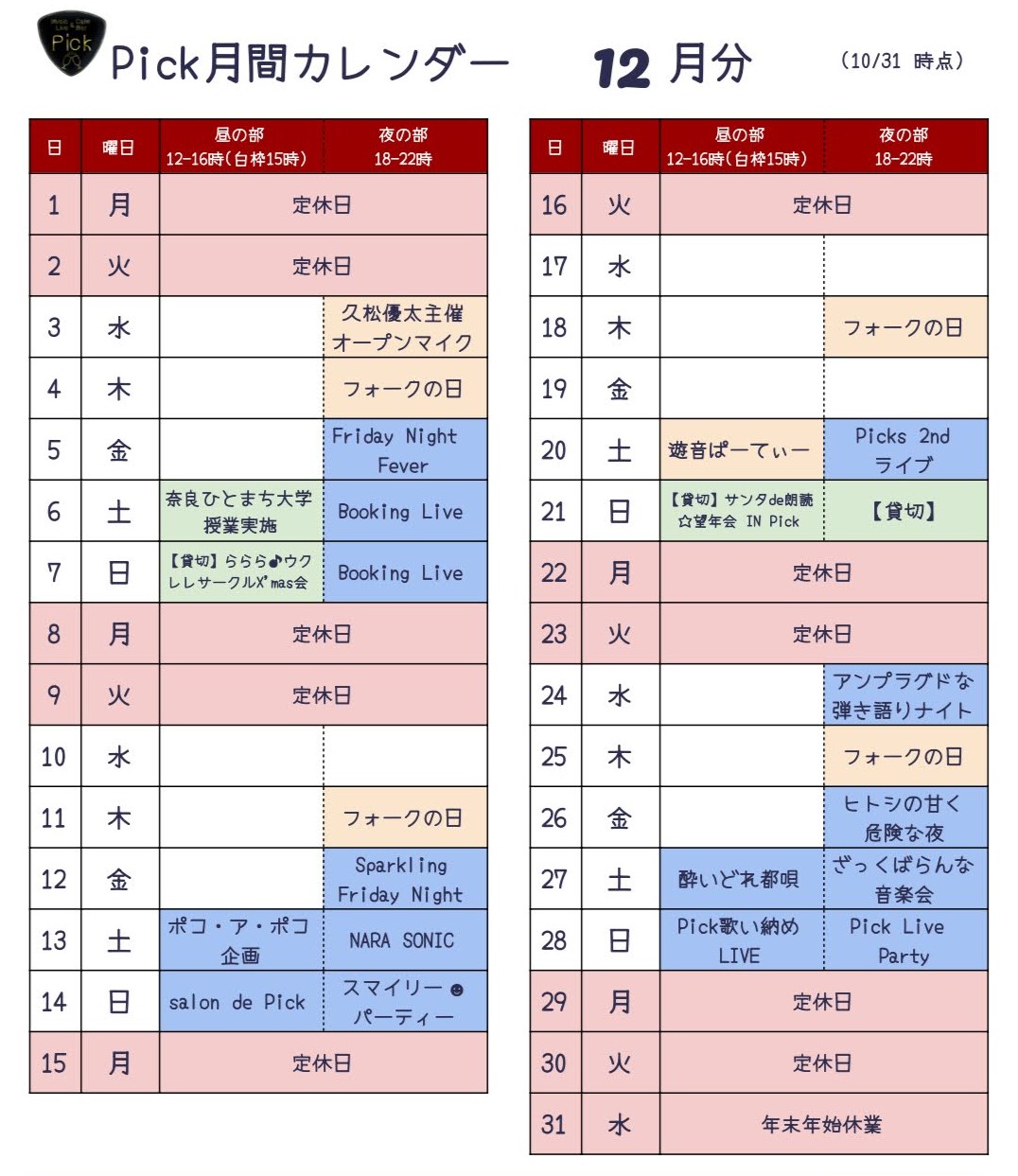 イベント・営業スケジュール